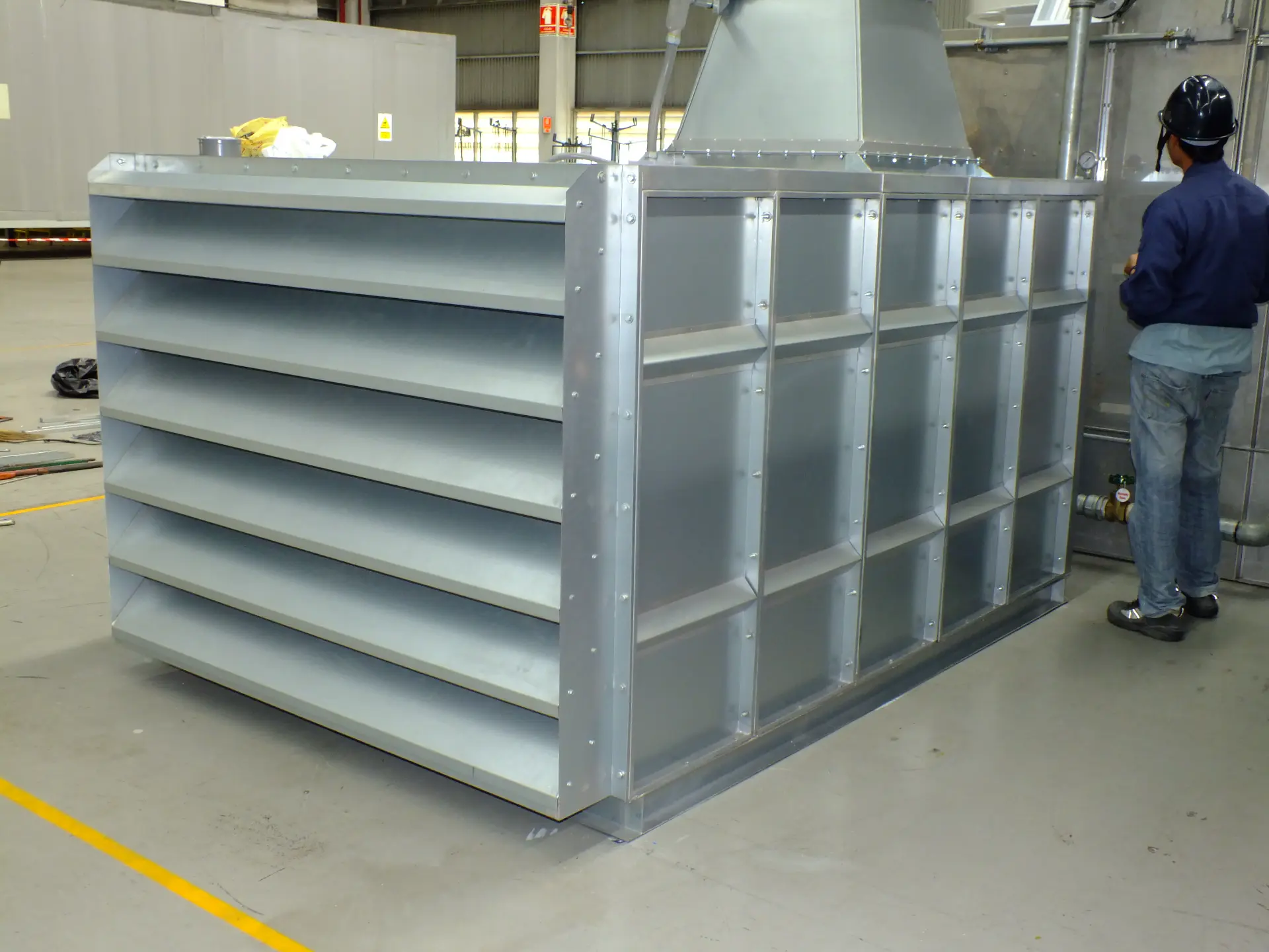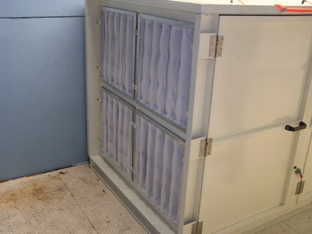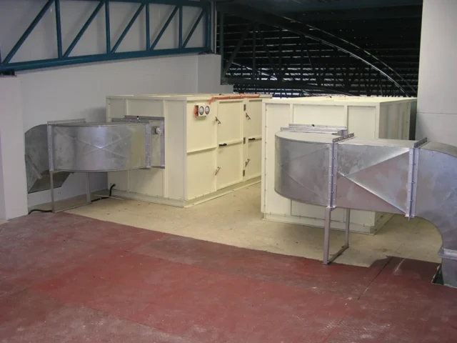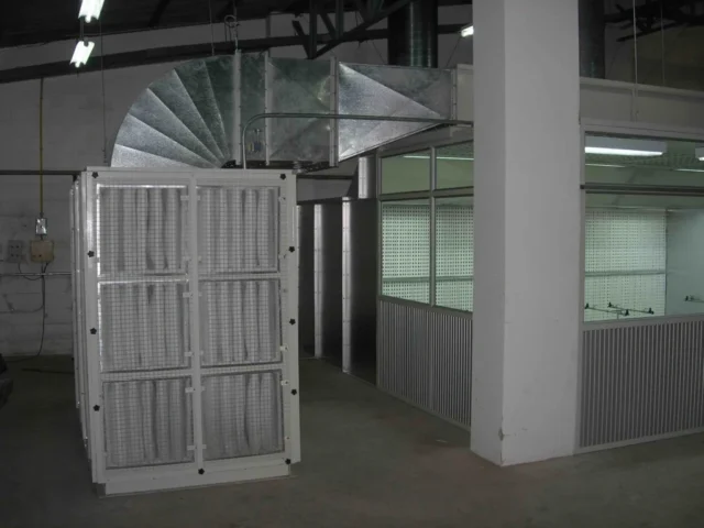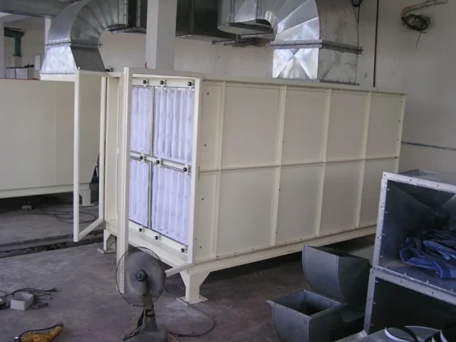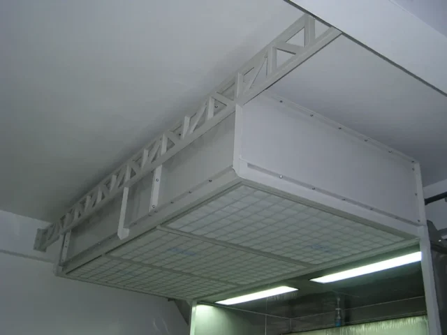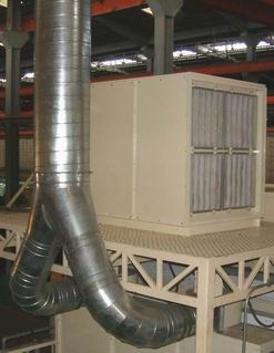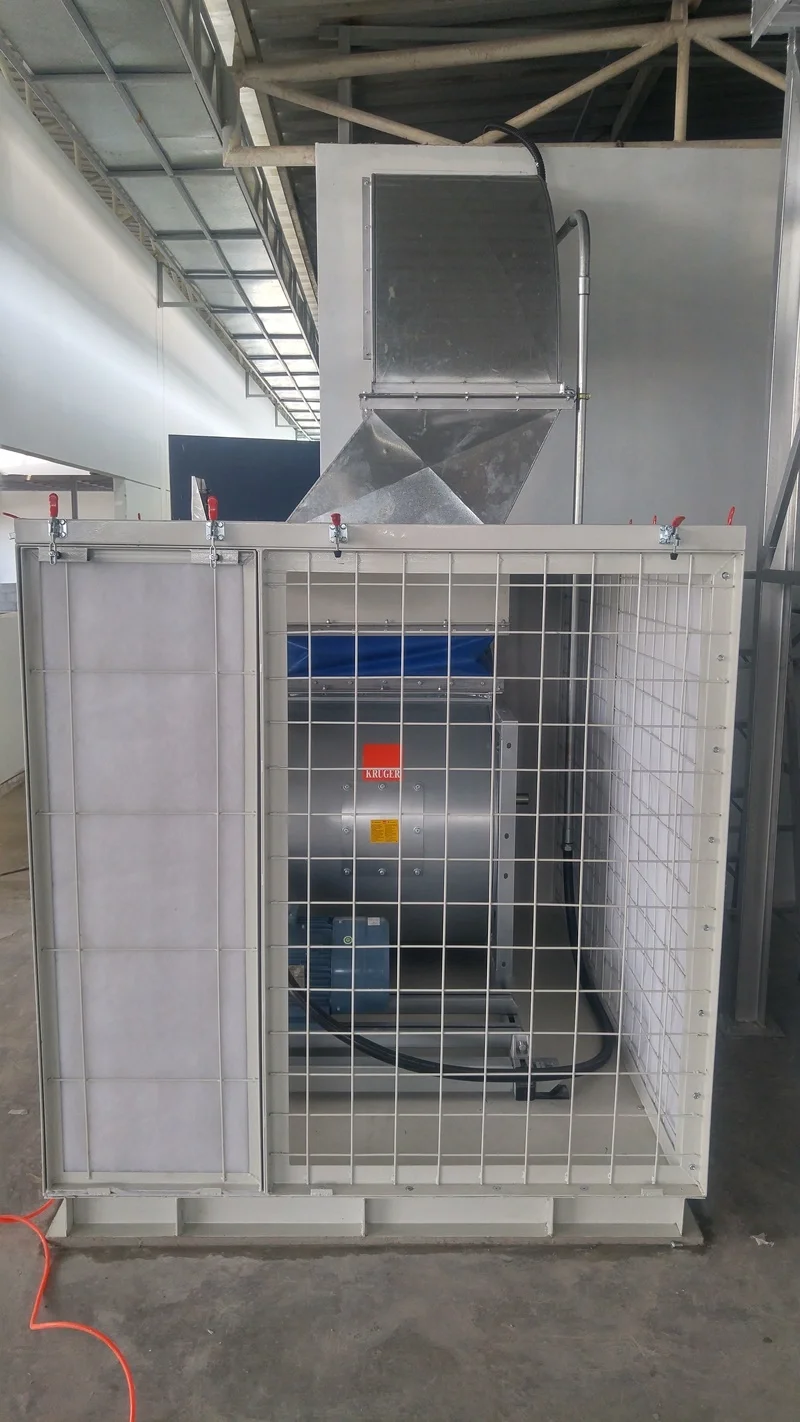 2. ท่อจ่ายอากาศ (Supply duct) ทำหน้าที่ลำเลียงอากาศจากชุดพัดลมจ่ายเข้าไปในห้องพ่นสีหรือห้องทำงาน