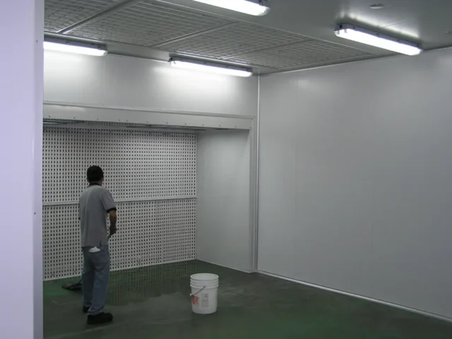 3.หัวจ่ายลม (Air supply chamber) ทำหน้าที่กระจายลมตลอดด้านหน้าของห้องพ่นสีให้สม่ำเสมอ