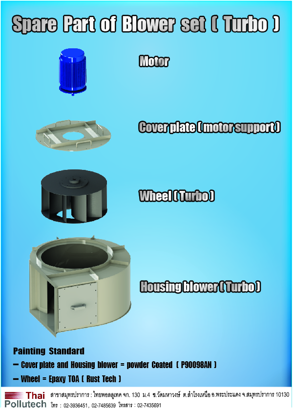 | BLOWER | Axial Blower (Powder Coating), Blower Part (Axial), Blower Part (Turbo), Housing Turbo Blower (Powder Coat), Housing Turbo Blower (SUS304), Turbo Wheel (SS400), Turbo Wheel (SUS304) |