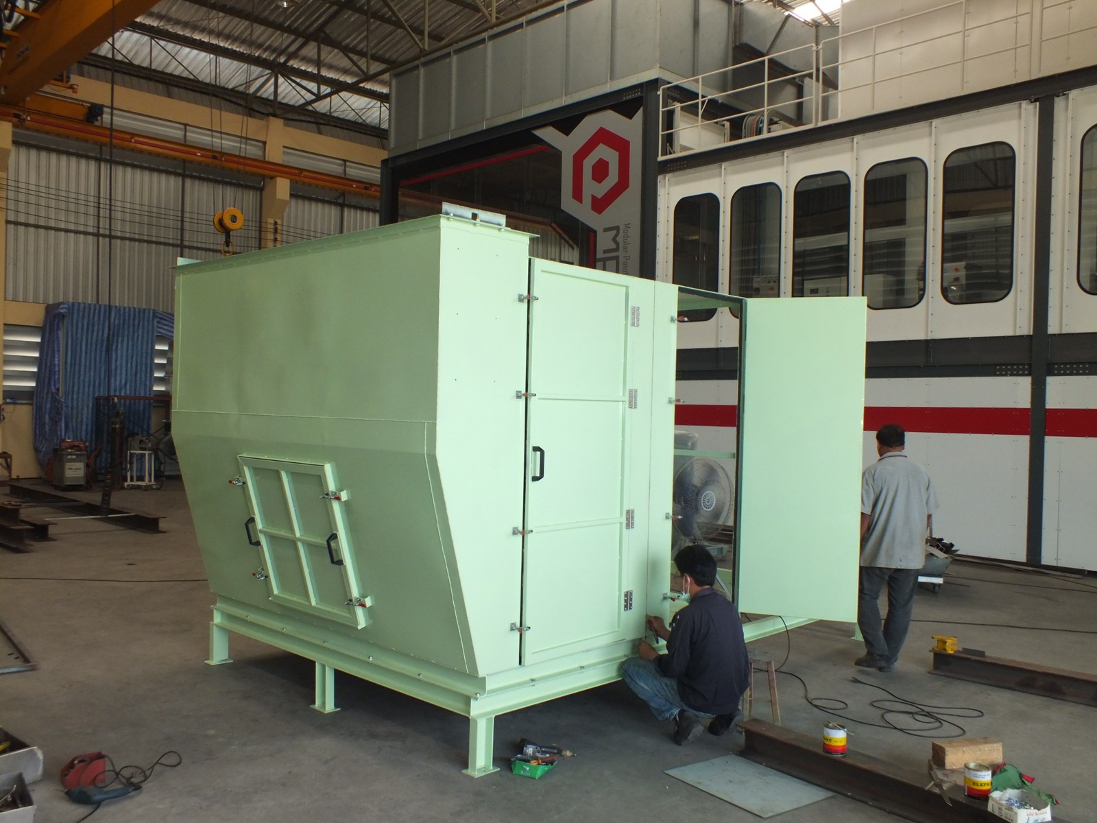 ถ่านคาร์บอน (Activated Carbon) เป็นวัสดุที่ผลิตจากกะลามะพร้าวหรือถ่านไม้ซึ่งผ่านการเผาที่อุณหภูมิสูง จนกลายสภาพเป็นเกล็ดเล็กๆ สีดำ ภายในเกล็ดคาร์บอนมีรูพรุนและพื้นที่ผิวมาก ทำหน้าที่ดูดกลิ่นและไอระเหยพวก ทินเนอร์ โทลูอีน ไซลีน และตัวทำละลายต่างๆจากกกระบวนการพ่นสี ไอสารเคมี/กลิ่นจะถูกดูดติดผิวคาร์บอนโดยกระบวนการ Adsorption ส่วนอากาศสะอาดจะถูกปล่อยทิ้ง